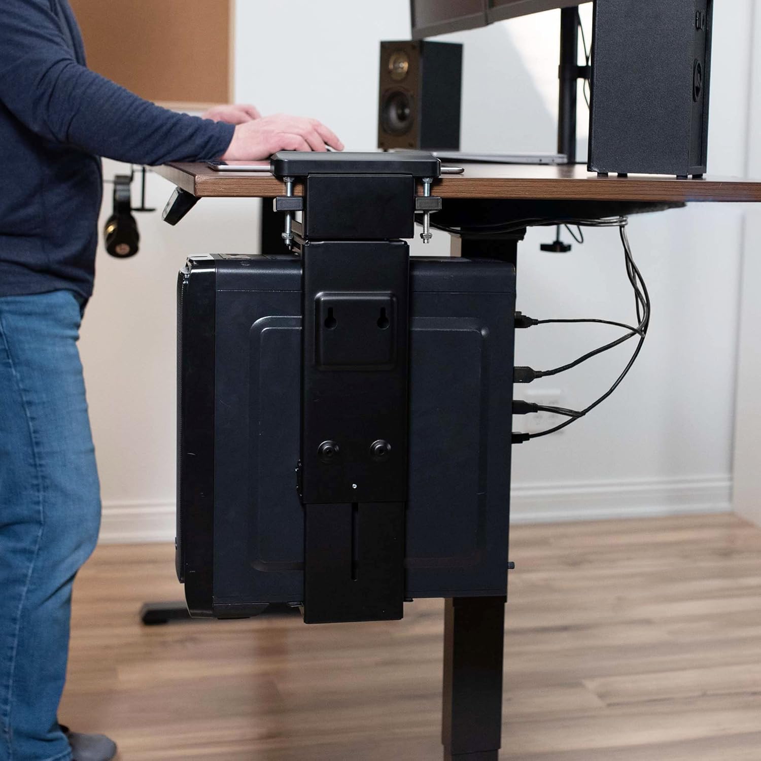 VIVO Adjustable Clamp-On Desk and Wall Installation PC Mount, 3.0 USB Ports, Computer Case CPU Holder with Swivel Action and Secure Locking, Black, MOUNT-PC10BU