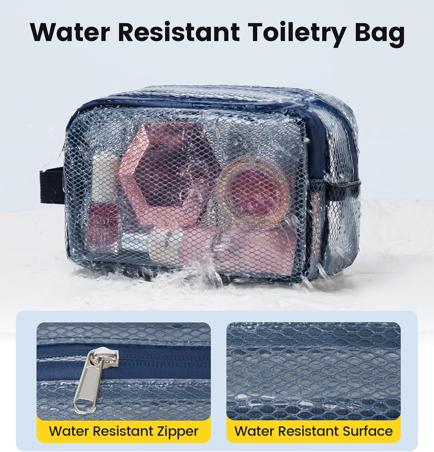Vorspack Small Travel Toiletry Bag – Translucent Toiletry Bag for Women Hanging Toiletries Bag for Men Water Resistant Doop Kit Travel Bag for Toiletries Accessories – Blue