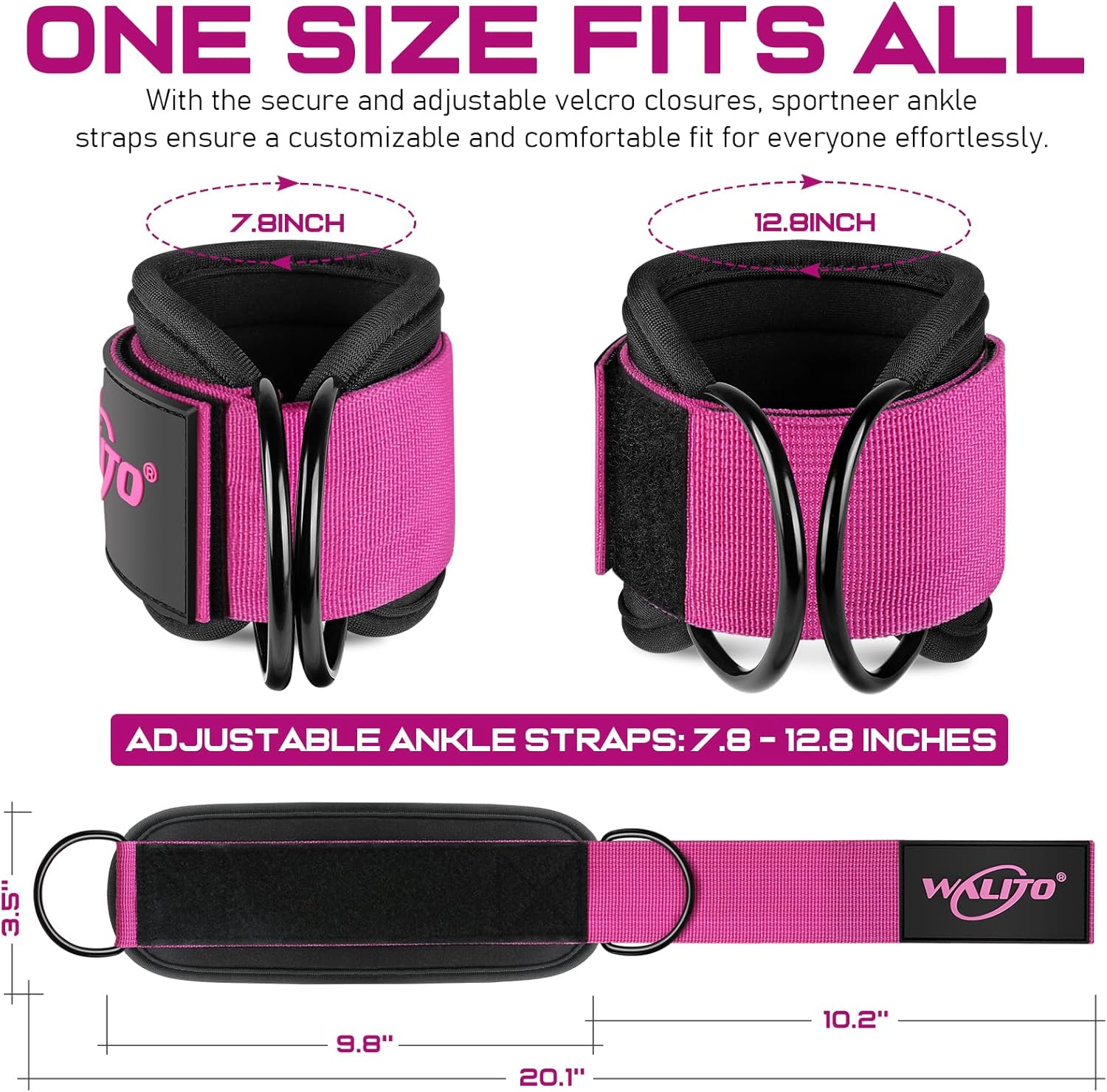 WALITO Gym Ankle Straps for Working Out – Glute Ankle Cuff Kickback Strap, Gym Cable Machine Accessories for Women Glute Leg Extensions, Hip Abductors & Lower Body Exercises Equipment