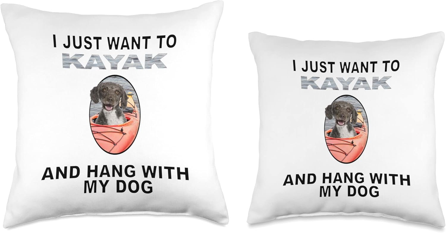 Want To Kayak Hang W Dog Spanish Water Spaniel Throw Pillow