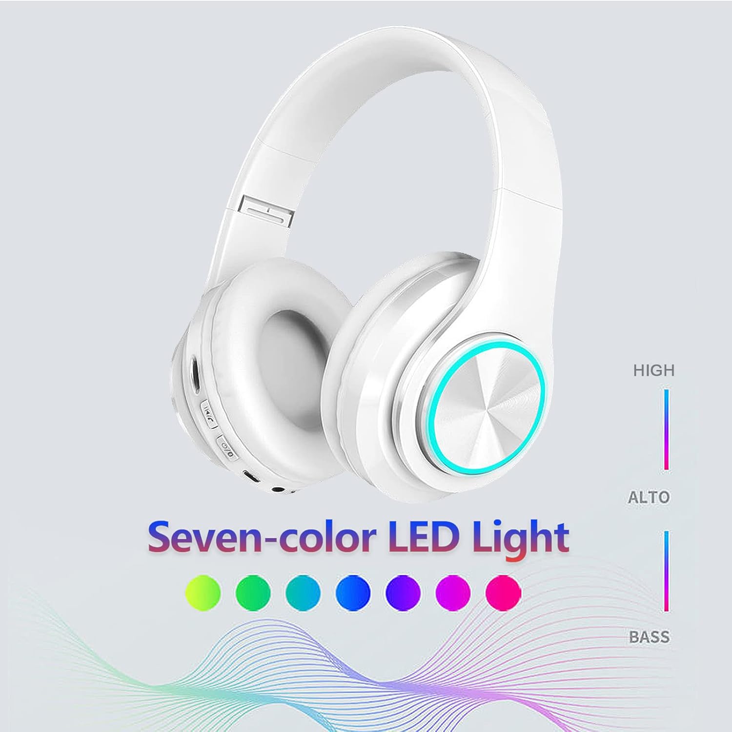 【Colorful LED Light Design】wireless bluetooth headphone is designed with colorful LED light, The LED light is installed on both sides of the headphones which changes with the rhythm of the music, making the music you listen more dynamic and unique. Stylish design elements are sure to bring joy and excitement to your daily life.