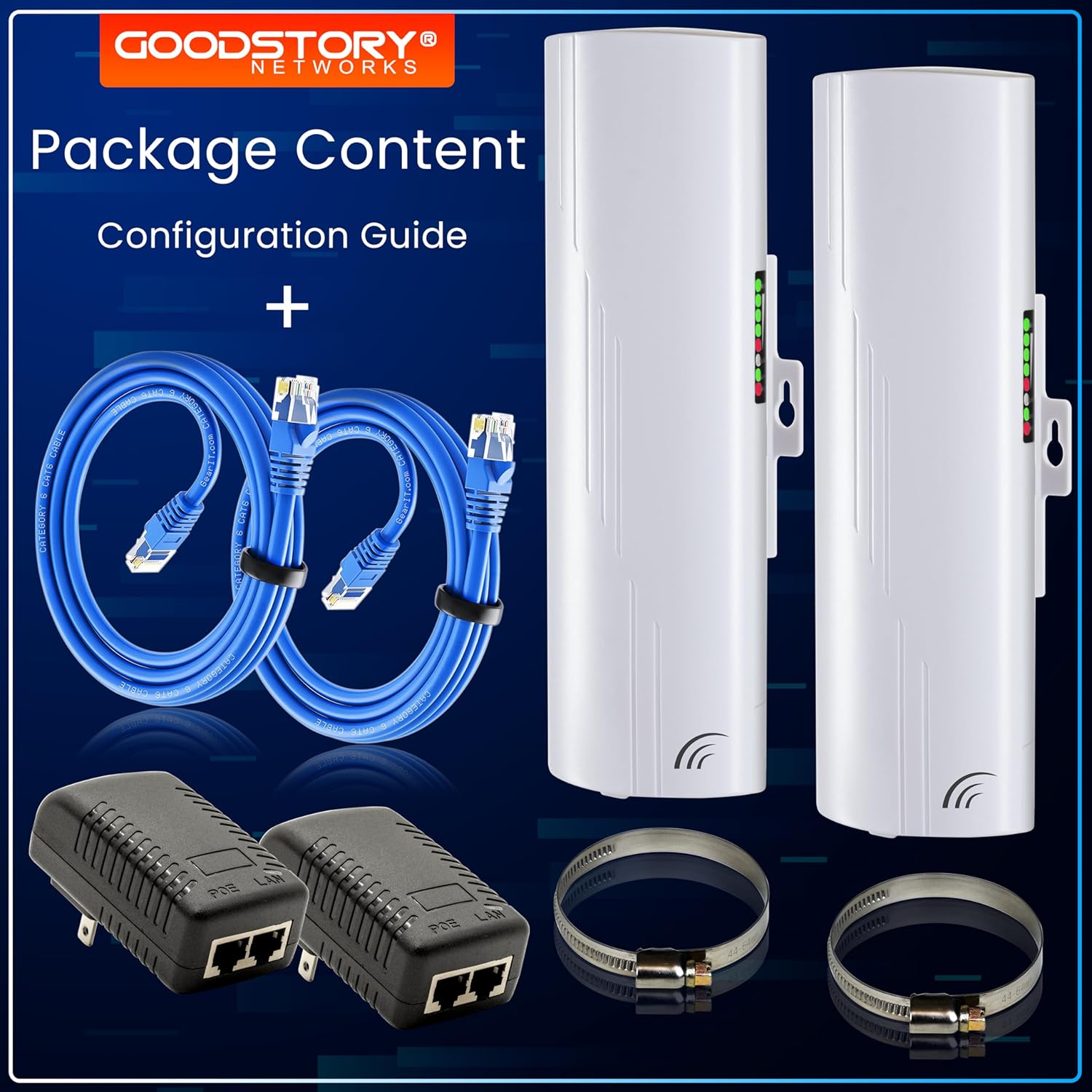 Wireless Bridge Point to Point Outdoor WiFi, Wireless Network Expansion Kit, Long Range High Speed 5G | 2 Units Bridge Kit Complete Pre-Configured – P2P 1000Mbps 5Km(2Pack)