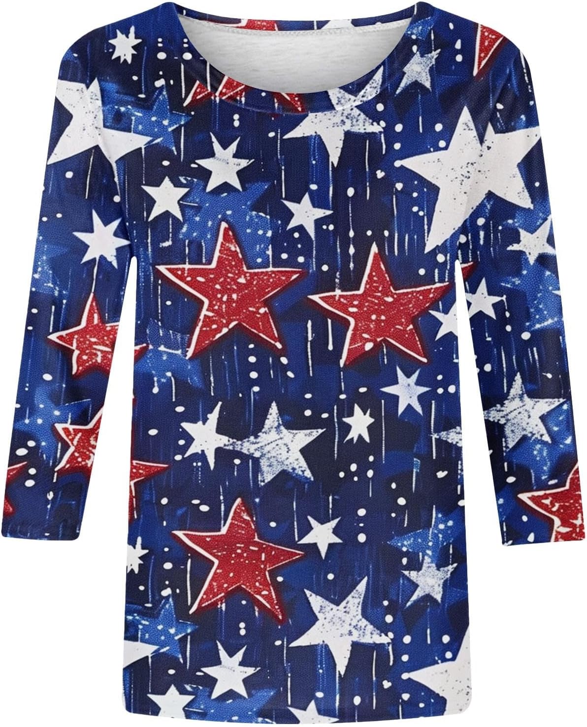 Women’s American Flag 3/4 Sleeve Shirts Trendy Plus Size Star Striped Patriotic Blouses Casual 4th of July Tops 2025