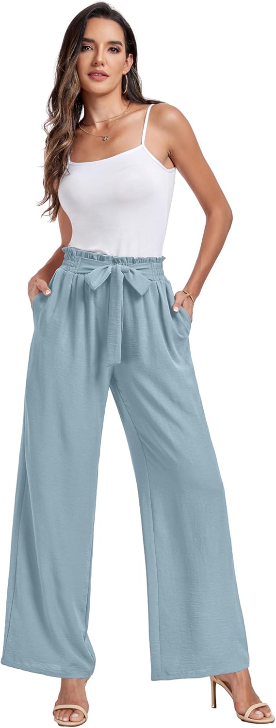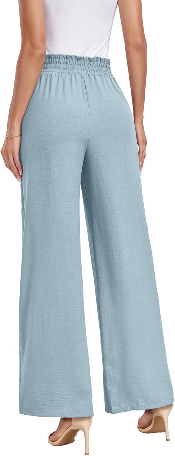 Women’s Palazzo Pants linen dress wide leg work flowy Loose business casual for ladies petite trousers lightweight summer dressy lounge Paperbag bottom beach slacks Loose Fit