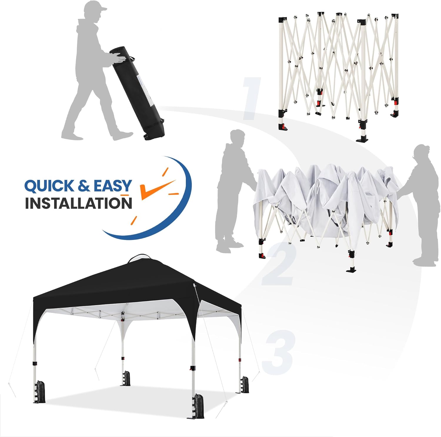 Weather-resistant Materials: Made from durable polyester fabric with a UPF 50+ UV coating, this 12ft × 12ft pop-up canopy features a powder-coated steel frame withstanding the elements and enhancing durability