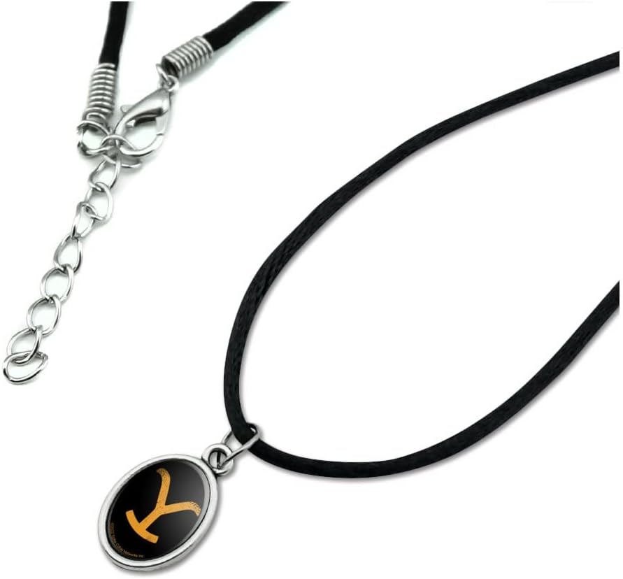 Yellowstone TV Show Brand Antiqued Oval Charm Pendant with Black Satin Cord