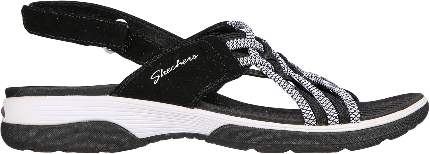 Be cool, easy and comfortable wearing Skechers Arch Fit® Reggae Sport – Hometown. This modern comfort sandal features a strappy stretch fabric upper with an adjustable sling-back strap closure and a supportive Arch Fit® contoured footbed.