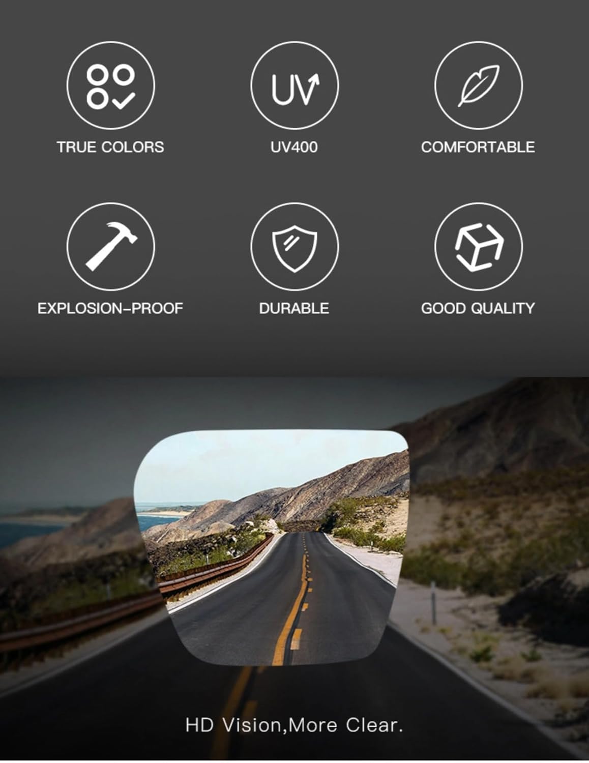 This UV400 Protection feature ensures that your sunglasses provide maximum protection against harmful UVA and UVB rays. Designed to block 100% of ultraviolet radiation, these lenses safeguard your eyes from the damaging effects of prolonged sun exposure, such as cataracts, macular degeneration, and photokeratitis (sunburn of the eye).