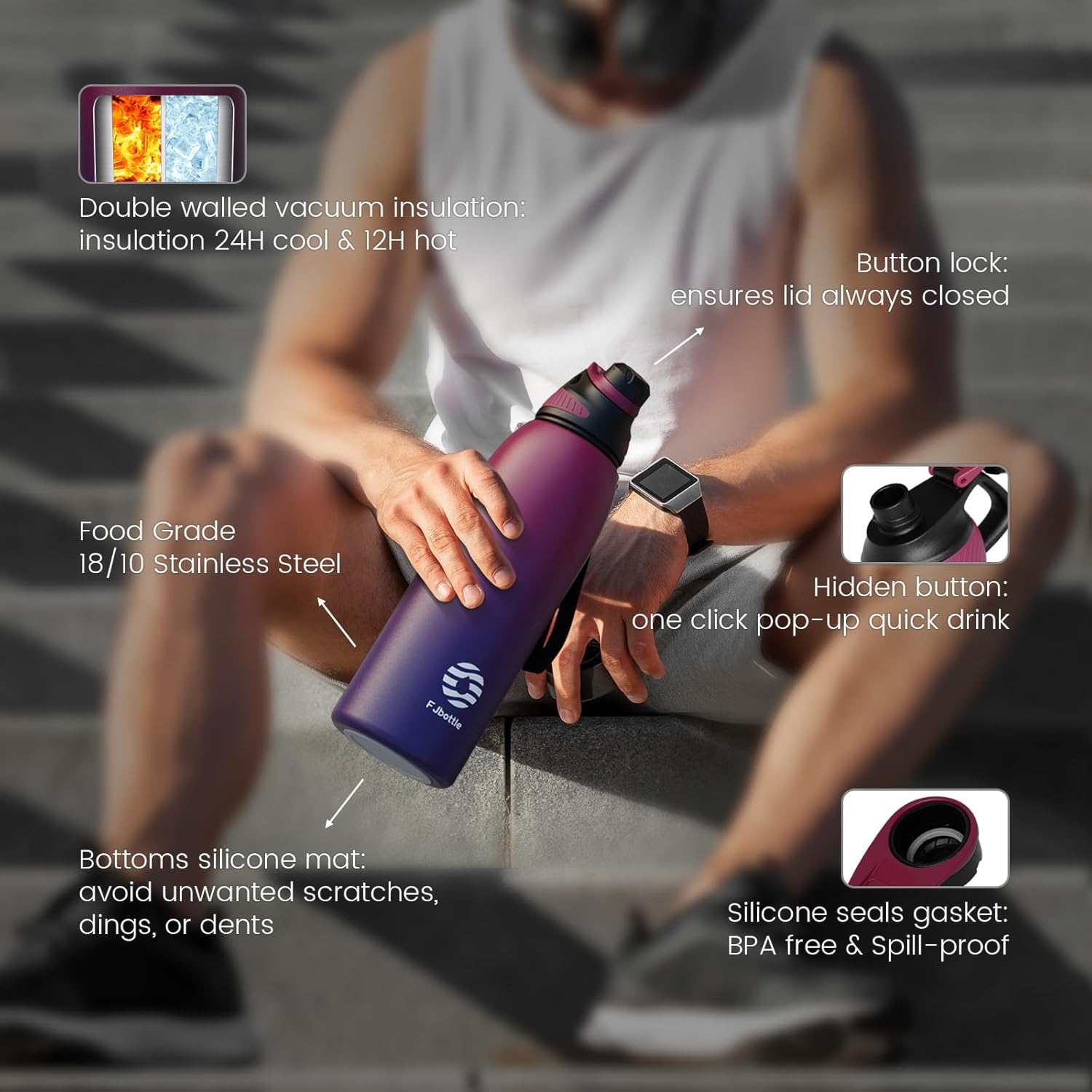Fjbottle water bottles make your life better,enjoy outdoor and home,give family/friends/neighbors the care of keeping the drink cold or hot anytime and anywhere.
